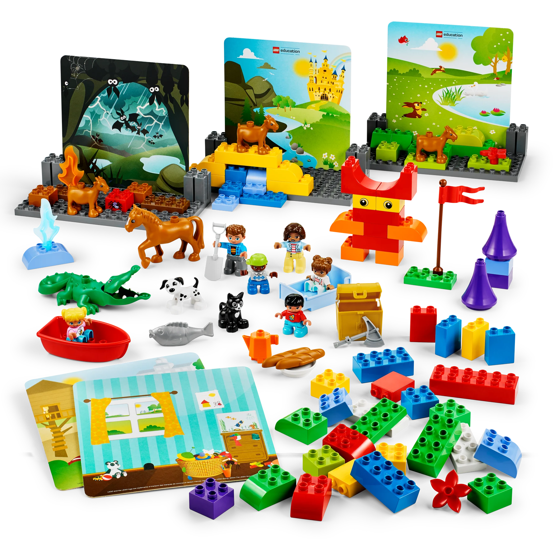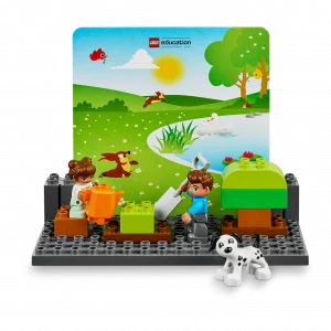 El LEGO® Education StoryTales, està especialment dissenyat per a la narració de contes en l’educació infantil. Inclou una varietat de maons i personatges únics que faciliten la construcció d’escenes i la representació d’històries. El set inclou tres bases per a construir i cinc targetes de fons a doble cara, oferint múltiples escenaris per a les narracions. A més, s’inclou una targeta d’activitats amb idees inspiradores per a facilitar l’inici i guiar les activitats de narració.